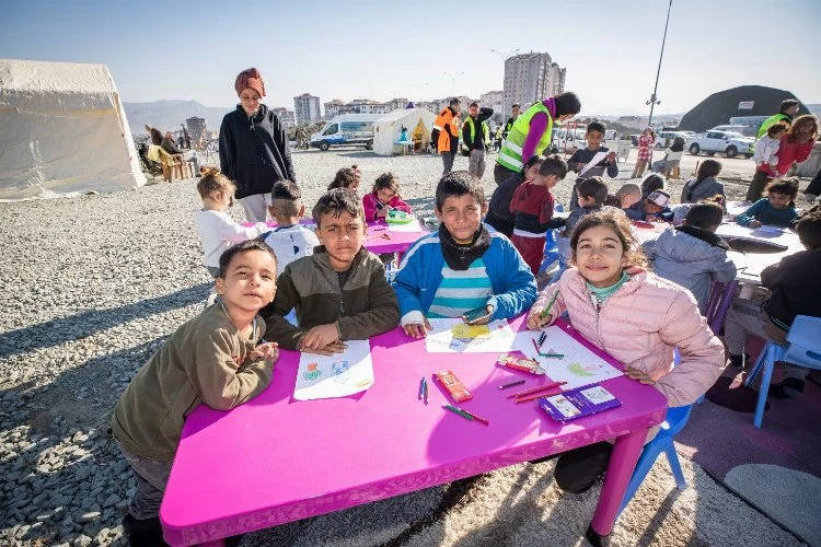 İzmir Büyükşehir Belediyesi, Hatay’da kurduğu çadır kentte depremzedelere psikolojik destek de sağlıyor. Çocuklar için alanda Masal Evi açan İzmir Büyükşehir Belediyesi, “Psikososyal Destek Ağı” ve “ANAHTAR Kadın Çalışmaları Bütüncül Hizmet Merkezi” çalışmalarıyla afetzedelerin yaralarını sarıyor.