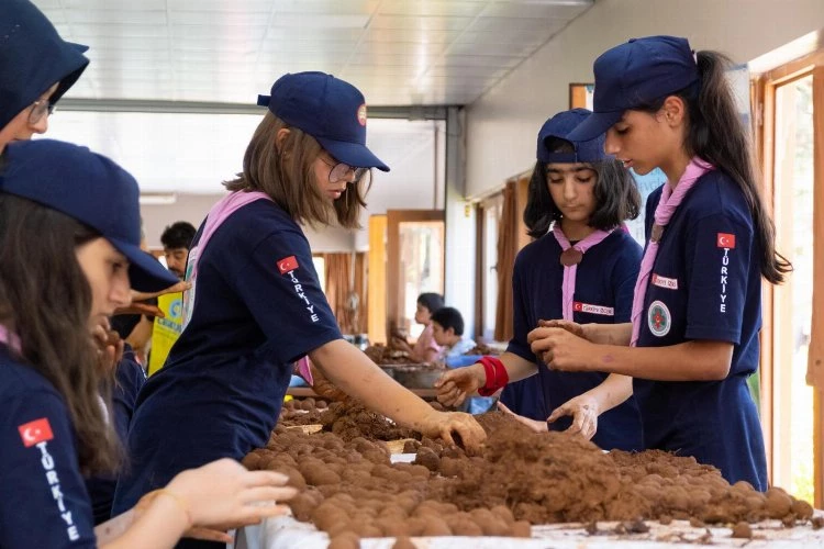 Yaşları 10-15 arasında değişen depremzede izciler, oryantiring, okçuluk, atıcılık, doğa yürüyüşü, hazine avı, tırmanma gibi izcilik oyun ve eğitimlerinin yanı sıra Türkiye’nin öncü katılım finans kuruluşu Kuveyt Türk’ün desteğiyle ve Çevre Kuruluşları Dayanışma Derneği’nin (ÇEKUD) koordinasyonunda kamp alanında oluşturulan istasyon ve atölyelerde tohum topları hazırlıyor.