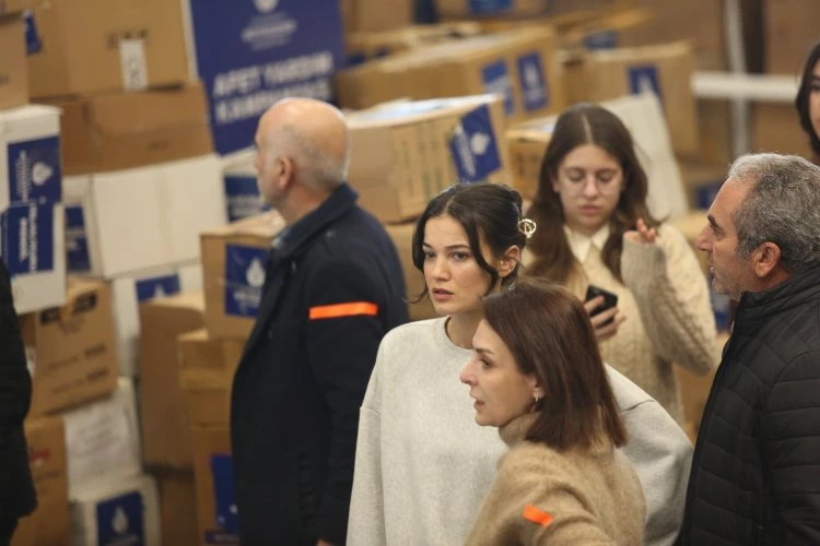 İBB Genel Sekreter Yardımcısı Mahir Polat’ın anlatımıyla alanı gezen Prof.Dr. İlber Ortaylı’yı gönüllüler de coşkuyla karşıladı. Tamer Levent, Serenay Sarıkaya, Pınar Deniz, Kaan Yıldırım, Burak Deniz, Fırat Çelik, Hande Doğandemir, Aras Bulut İynemli, Öner Erkan, Engin Öztürk, Çağlar Çorumlu, Güven Murat Akpınar, Salih Bademci, Burcu Biricik, Öykü Karayel, Seda Akman, Tolga Tekin, Elif Kurtaran, Meriç Aral, Tuğrul Tülek, Selma Ergeç, Settar Tanrıöğen, Hasibe Eren, Esra Ruşan, Cihangir Ceyhan, Berk Atan, Bennu Yıldırımlar, Özge Özder, Levent Üzümcü, Yıldıray Şahinler, Sarp Apak, Ahsen Eroğlu, Yusuf Çim, Onur Buldu, Emir Çubukçu, Dinçer Güner gelen yardımları hem paketlediler hem de kolileri tırlara taşıdılar.