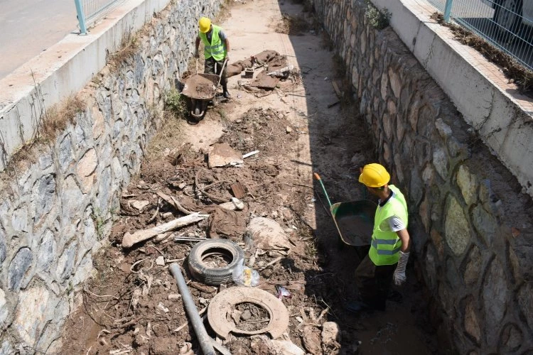 MANİSA (İGFA) - MASKİ ekipleri tarafından dereden 12 kamyon olmak üzere 240 ton çöp çıkarıldı. Dere içerisine atılan halı, valiz, moloz ve hafriyat, plastikler, mobilya, cam şişe, araç tekerlekleri gibi atıklar şaşkına çevirdi.