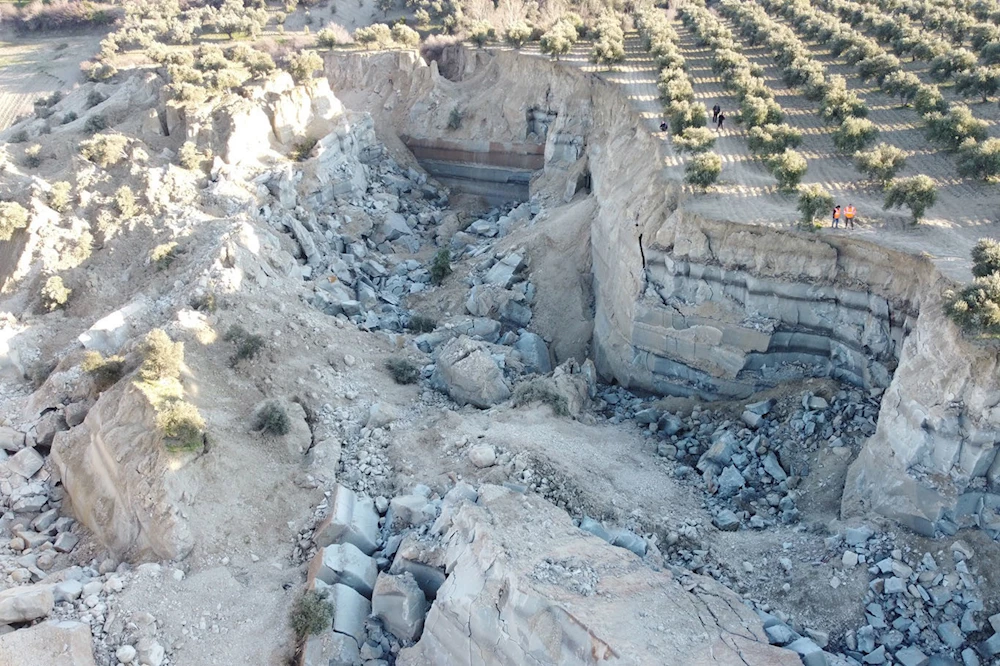 Kahramanmaraş'ta meydana gelen depremden hemen sonra Hatay'da bir zeytinlikte oluşan kanyon benzeri devasa yarığı görenler hayretler içinde kalıyor.