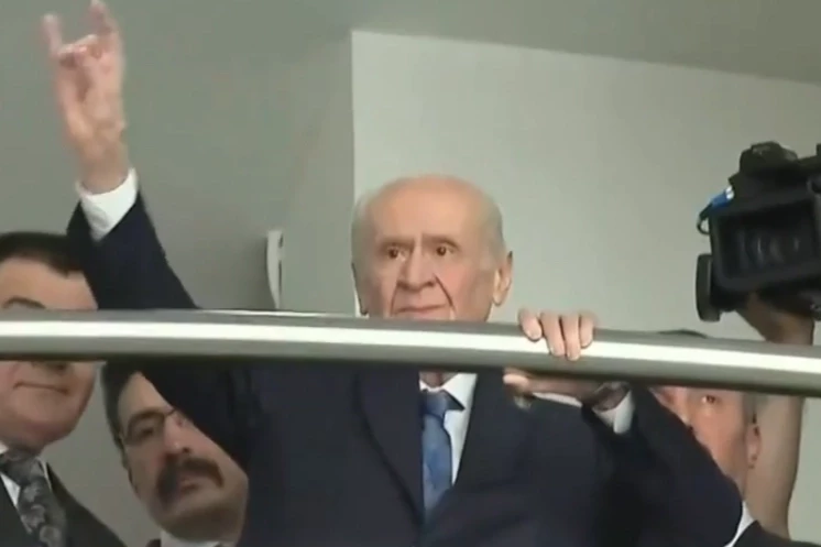 Yoğun ilgi üzerine Bahçeli balkondan bozkurt işareti ile kalabalığı selamladı. Büyük kalabalık Bahçeli'yi karanfillerle karşıladı.