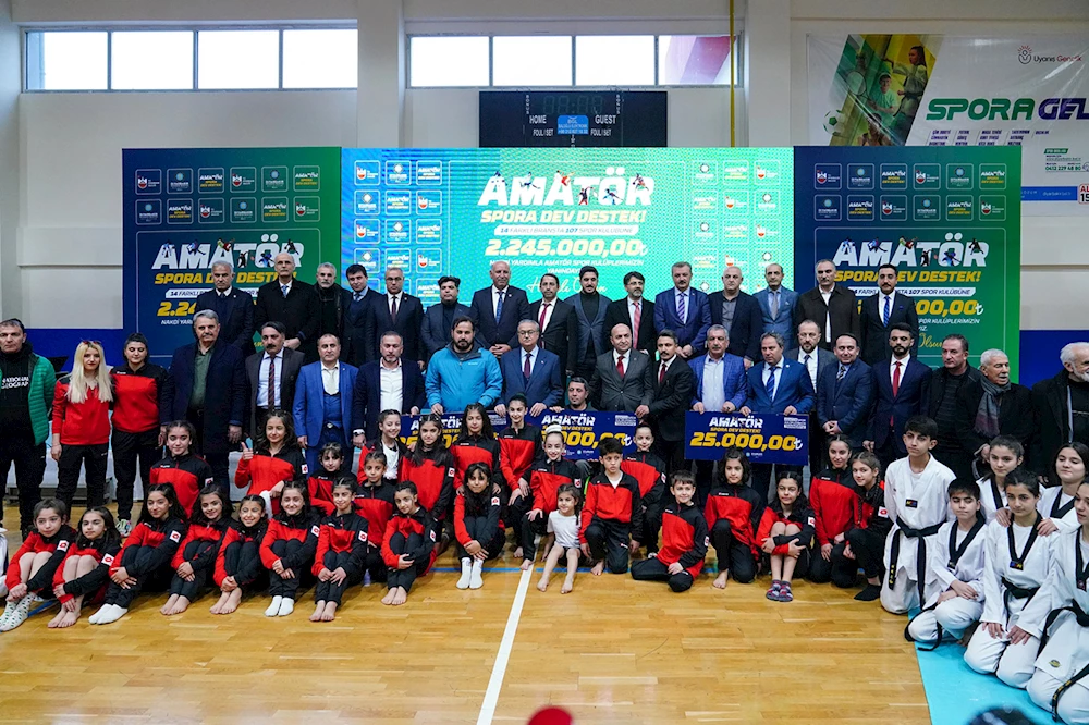 Diyarbakır Büyükşehir Belediyesi, 'Amatör Spora Dev Destek' sloganıyla kentte 14 farklı sportif branşta faaliyet yürüten 107 spor tesisine 2 milyon 245 bin lira nakdi yardımda bulundu.