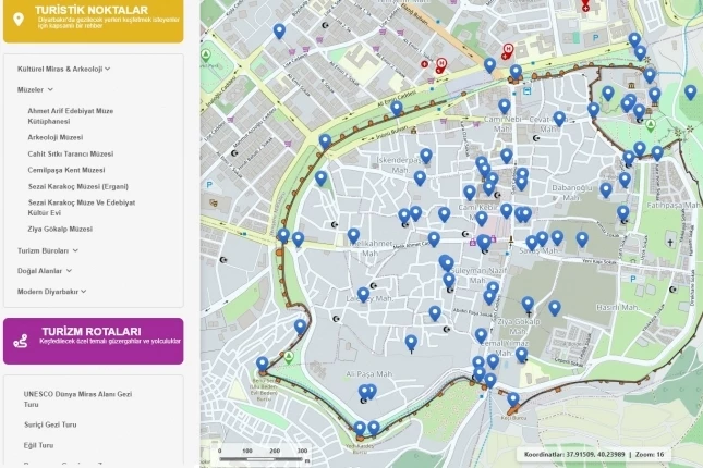DİYARBAKIR (İGFA) - Diyarbakır Büyükşehir Belediyesi, dijital belediyecilik vizyonu kapsamında kentin turizm potansiyelini artıracak önemli bir projeyi hayata geçirdi. Belediye, 7 gün 24 saat erişilebilir harita tabanlı web Gezi Rehberi uygulamasını yurttaşların kullanımına sundu.