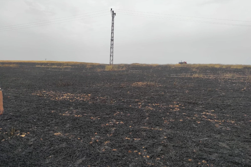 Diyarbakır'ın Çınar ilçesinde, elektrik kontağından çıktığı sanılan tarla yangınında 20 dönüm arpa ekili alan yandı.