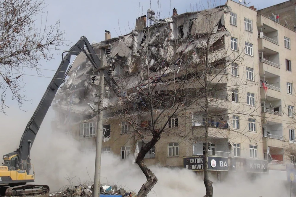 Diyarbakır'ın Bağlar ilçesinde Kahramanmaraş merkezli depremlerde ağır hasar alan yapılar 2 bina yıkım işlemi, kontrollü bir şekilde yapıldı.