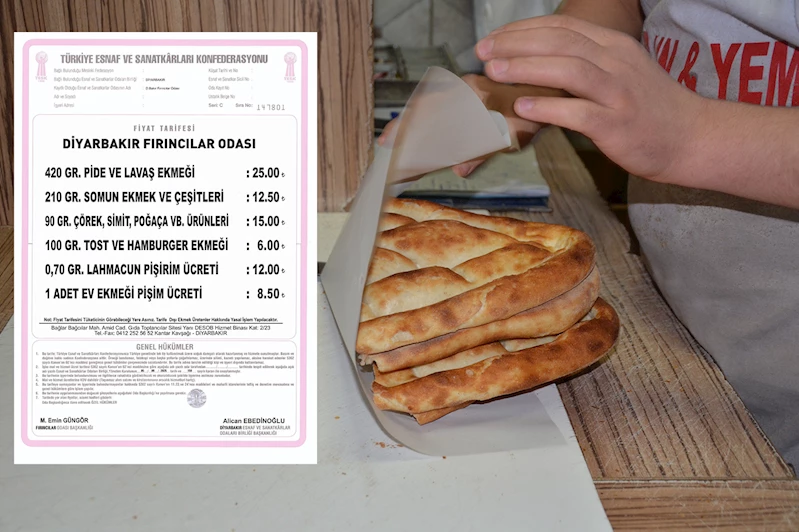 400 gram pide ve lavaş ekmeği: 20 TL, 200 gram somun ekmek ve çeşitleri: 10 TL, 180 gram yağlı ekmek ve çeşitleri: 25 TL, 90 gram simit, çörek, poğaça vb.: 12 TL, 100 gram tost ve hamburger ekmeği: 5 TL, 0,70 gram lahmacun pişirme ücreti: 10 TL ve bir adet ev ekmeği pişirme ücreti: 7 TL iken Diyarbakır Fırıncılar Odası'nın kararıyla fiyat listesi şöyle güncellendi: