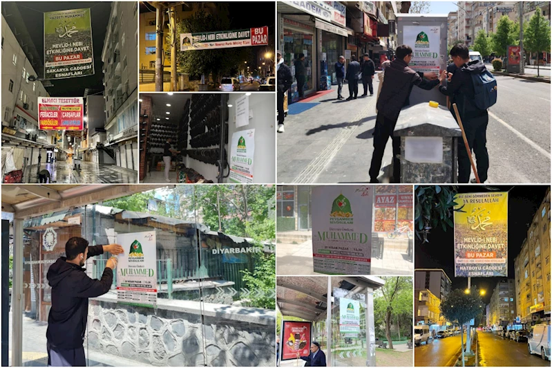 Gerçekleştirilecek Mevlid-i Nebi programı öncesinde Diyarbakır sokaklarında tatlı bir heyecan oluşmaya başladı. Peygamber Sevdalıları Vakfı üye ve gönüllüleri tarafından kentin tüm sokaklarına asılan afişler ile halk etkinliğe davet edildi.
