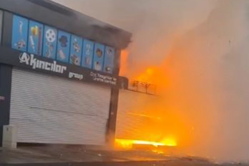 Patlama sonrası çıkan alevler, çevredeki iki işyerine daha sıçradı.
