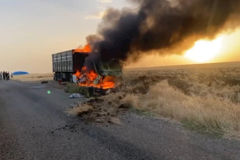 Elektrik aksamından çıktığı tahmin edilen yangında tır tamamen küle dönerken, çevre halkı yangının tarlalara sıçramaması için büyük çaba sarf ettiği görüldü.