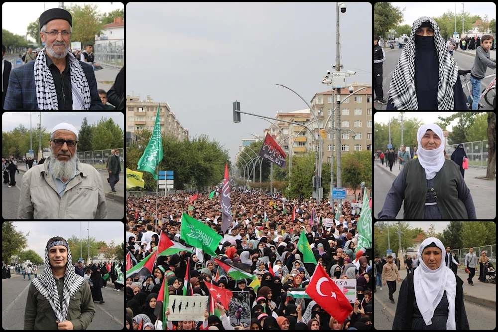 HÜDA PAR'ın Diyarbakır'da düzenlediği Filistin'e destek mitingine katılanlar Mescid-i Aksa'ya olan bağlılıklarını dile getirirken bir annenin fedakarane bir şekilde 'Gerekirse bizlerde çocuklarımızla oraya gidelim ve Kudüs için şehid olalım' ifadesi kalbindeki Kudüs sevdasını gözler önüne serdi.