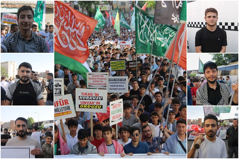 "Müslüman kardeşlerimiz orada şehit olurken bizim burada elimizden bir şey gelmemesi içimizi yakıyor." ifadelerinin kullanan Muhammed Recep Beşgat ise "Biz Gazzeli kardeşlerimiz için bugün yürüyoruz. Bu zulmün bitmesi için Allah'ın emri olan cihad etmemiz lazım. Bunun başka bir çaresi yok. Hiçbir şey yapmamamız hem günah hem de Allah'ın yasakladığı bir şeydir. Müslüman kardeşlerimizin yanına gidip onlarla birlikte savaşmamız lazım." dedi.