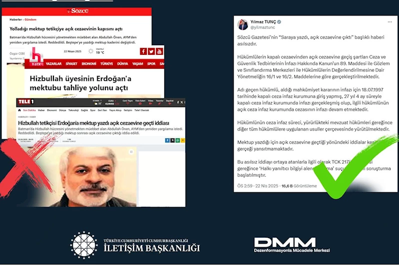 DMM, bazı basın yayın organlarında yer alan, "Müebbet hapis cezası alan bir mahkum, Cumhurbaşkanı'na mektup yazdığı için açık cezaevine çıkarıldı." iddiasına ilişkin açıklama yaptı.
