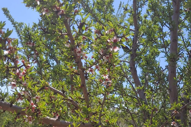 Günpınar Mahallesi Yokuş mezrasında Derviş Güneş’e ait badem ağaçları ve çevredeki bazı ağaçlar çiçek açtı.