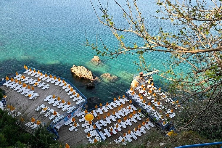 ANTALYA (İGFA) - Antalya’nın dünyaca ünlü falez sahil bandından turistleri, kent sakinlerin Akdeniz’in masmavi sularıyla buluşturan Muratpaşa Belediyesi falez plajlarından İnciraltı’nda yeni sezon başladı. Belediyenin 5 plajı içinde asansörle de inilebilen tek plaj olan İnciraltı’na bu yıl da girişler ücretsiz. Saat 06.00’da açılan ve plaj hizmetlerinin 08.00’de başladığı plajda şezlong ve şemsiye kiralama ücreti ise 100 lira.