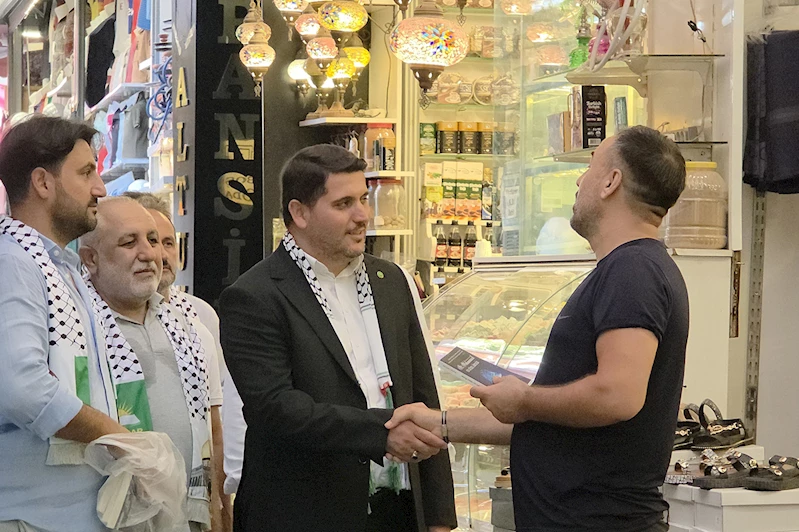 Tarihi Muratpaşa Camii'nde ikindi namazı sonrası halkın kandilini tebrik eden HÜDA PAR heyeti, ardından tarihi Kaleiçi esnafını ziyaret edip her esnafa siyer kitabı hediye etti.