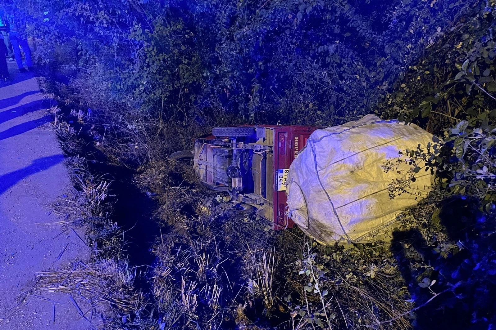 Sefer DEMİR / DÜZCE (İGFA) - Yol kenarında bulunan tarlaya devrilen Elektrikli kağıt toplama aracında bulunan Sürücü A.D. ve yanında bulunan oğlu D.D. Hafif şekilde yaralandı.