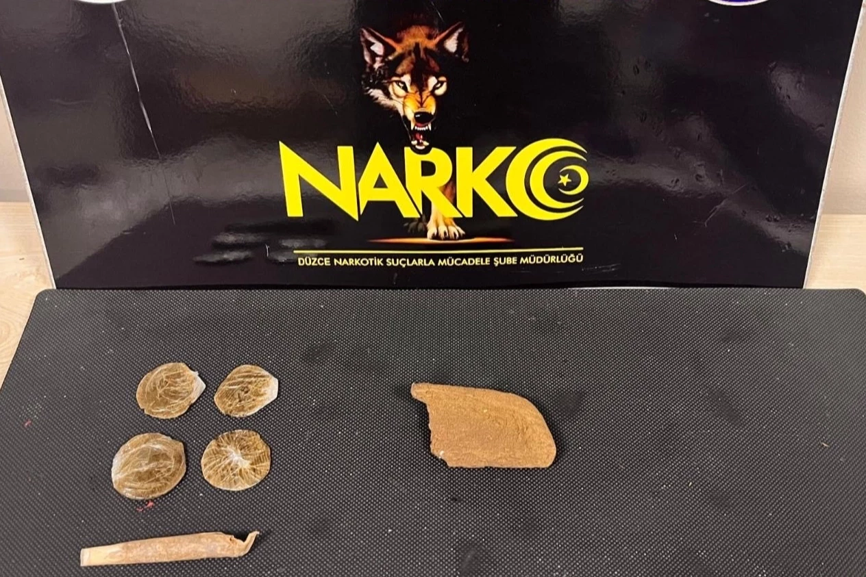Sefer DEMİR / DÜZCE (İGFA) - Düzce İl Emniyet Müdürlüğü’nün uyuşturucuyla mücadele kapsamında gerçekleştirdiği operasyonda, 1 parça halinde 65 gram eroin, 4 parça halinde 20 gram reçine esrar ve 1 parça halinde 3 gram esrar bulundu.