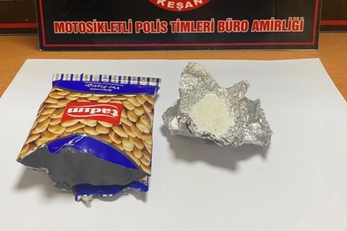 Edirne'nin Keşan ilçesinde Emniyet Müdürlüğü ekiplerince gerçekleştirilen operasyonda kuruyemiş paketinden uyuşturucu madde çıktı.