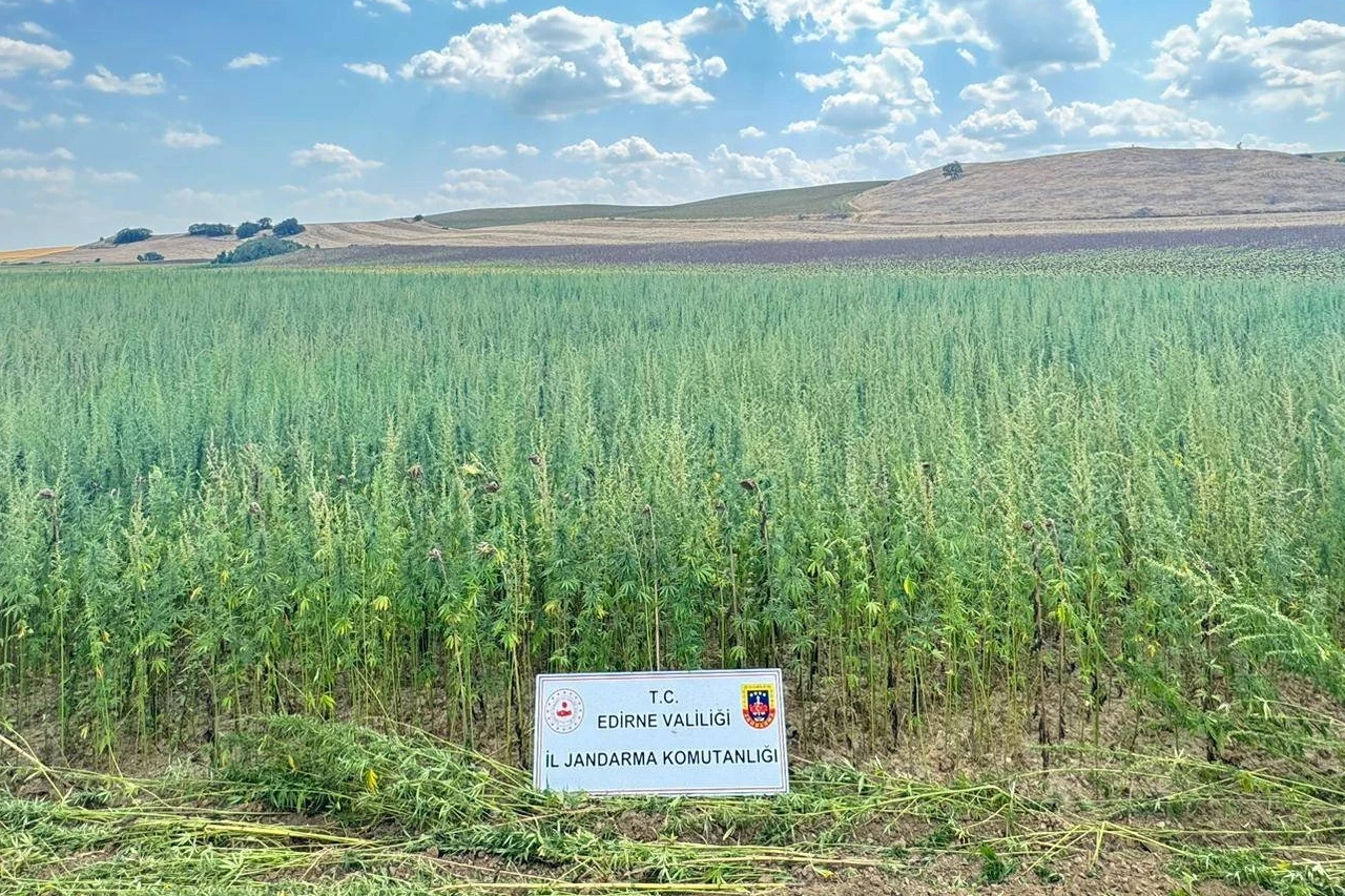 Edirne İl Jandarma Komutanlığı, kaçakçılıkla mücadele kapsamında merkez ilçeye bağlı Avarız Köyü'nde binlerce kök kenevir bitkisi ele geçirdi.