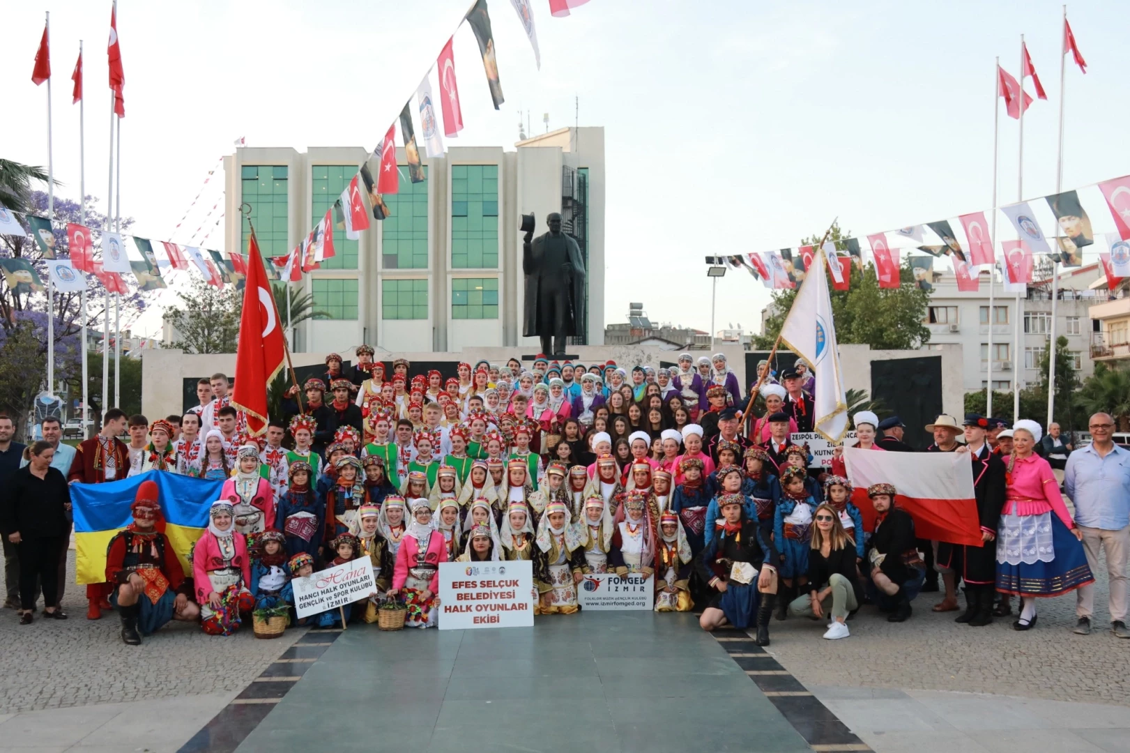 İZMİR (İGFA) - Bulgaristan, Gürcistan, Rusya ve Polonya’dan gelen ekipler, kendi kültürlerine özgü danslarıyla izleyicilere görsel bir şölen sunacak. Farklı kültürleri halk oyunları aracılığıyla bir araya getirecek olan şenlik, 30 Mayıs Cuma günü saat 19.00’da Atatürk Anıtı önünden başlayacak kortej yürüyüşüyle başlayacak. Tören Alanı’nda son bulacak kortejin ardından saat 20.00’de halk oyunları gösterileri başlayacak.