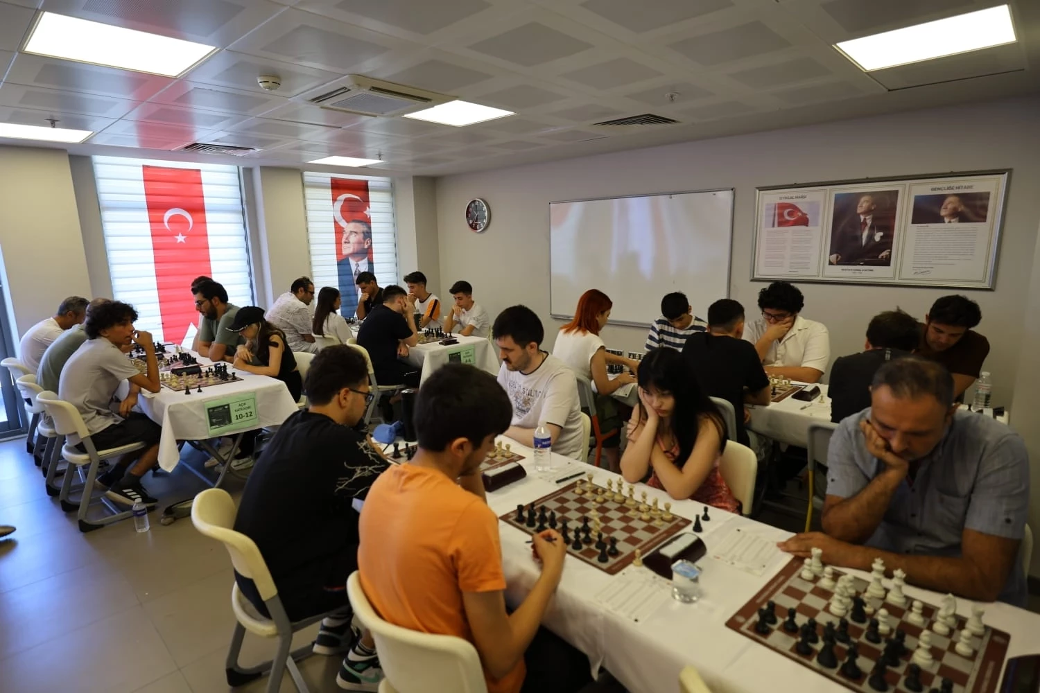 İZMİR (İGFA) - Farklı yaş kategorilerinde yaklaşık 100 çocuğun mücadele ettiği turnuvanın ödül törenine ailelerin yanı sıra Türkiye Satranç Federasyonu (TSF) Uluslararası Hakem ve Turnuva Gözlemcisi Abuzer Altuntaş, TSF Turnuva Başhakemi Ulusal Hakem Mehmet Canaç, TSF Ulusal Hakem ve Başhakem Yardımcısı İbrahim Karaca, TSF Aday Hakemleri Dursun Ören ve Kaan Tanyeri ile Turnuva Direktörü Recep Minas katıldı.