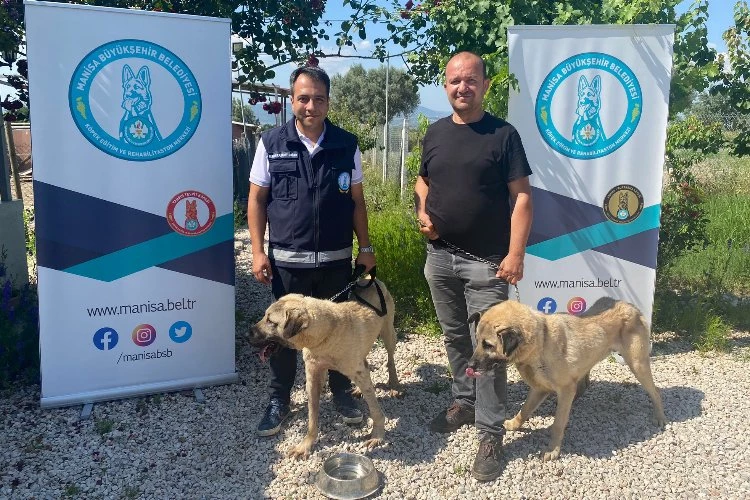 Manisa Büyükşehir Belediyesi Sağlık İşleri Dairesi Başkanlığı bünyesinde hizmet veren Köpek Eğitim ve Rehabilitasyon Merkezi’nde eğitimini tamamlayan ‘Kiraz’ ve ‘Ateş’ isimli köpekler, Sedat Karakılınç isimli çiftçi tarafından sahiplenildi.