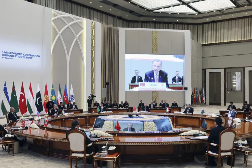 Özbekistan Cumhurbaşkanı Şevket Mirziyoyev'in ev sahipliğinde yapılan EİT Zirvesine Türkiye Cumhurbaşkanı Erdoğan, Azerbaycan Cumhurbaşkanı İlham Aliyev, İran Cumhurbaşkanı İbrahim Raisi, Pakistan'ın geçici Başbakanı Anvarul Hak Kakar, Tacikistan Cumhurbaşkanı İmamali Rahman, Kırgızistan Cumhurbaşkanı Sadır Caparov, Türkmenistan Cumhurbaşkanı Serdar Berdimuhamedov ve Kazakistan Başbakanı Alihan İsmailov katıldı.