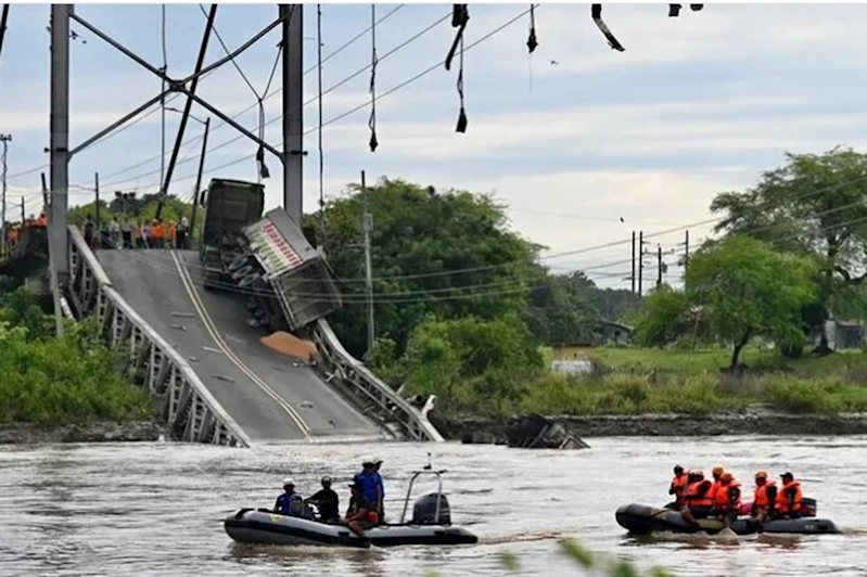 Ekvador'un Guayas bölgesinde Magro Nehri'ne üzerindeki asma köprüde çökme meydana geldi.