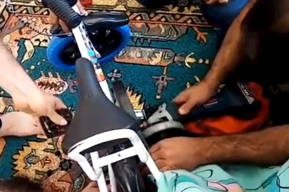 Eli bisiklet zincirine sıkıştıran çocuğun eli sıkıştığı yerden çıkarıldı
