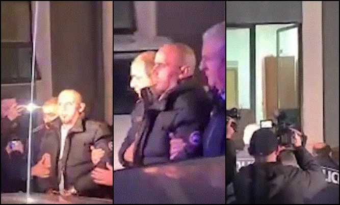 Gördüğünüz görüntü, Dan Hutra'nın Tiran Polis Departmanına gönderildiği anı gösteriyor. Fotoğraflardan da görülebileceği gibi, polis ekipleri onu karakola götürürken, başvuru sahibi kelepçeli olarak görünmektedir.