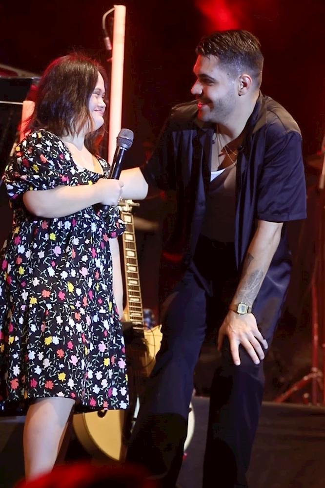 EMİR CAN İĞREK’İN İZMİR KONSERİNDE DUYGUSAL ANLAR “Ali Cabbar” şarkısıyla listelerin zirvesine yerleşen Emir Can İğrek yaz konserlerine devam ediyor. Emir Can İğrek dün akşam İzmir’de verdiği konserde sahnesine Down sendromlu bir hayranın konuk edince duygusal anlar yaşandı. Yeni albümü “Parti Bitti” ile listelerde fırtınalar estiren Emir Can İğrek, “Ali Cabbar” şarkısının popüler olmasıyla hayran kitlesini daha da büyüttü. Türkiye’nin dört bir yanından konsere çağrılan Emir Can İğrek yazı sahneden sahneye koşarak geçiriyor. Emir Can İğrek dün akşam İzmir Aliağa Sanat Günleri kapsamında bir konser verdi. Emir Can İğrek sahnedeyken konser alanında Down sendromlu bir seyircisinin olduğu notunu aldı. Cansu adındaki hayranını sahneye davet etti. İkili birbirlerine sıkıca sarılınca hem kendileri hem de kalabalık duygusal anlar yaşadı ve büyük bir alkış koptu. Cansu’nun en sevdiği şarkısını soran Emir Can İğrek “Notunu aldım Cansu, aramızda” dedi. Emir Can İğrek hız kesmeden yaz konserlerine devam edecek.