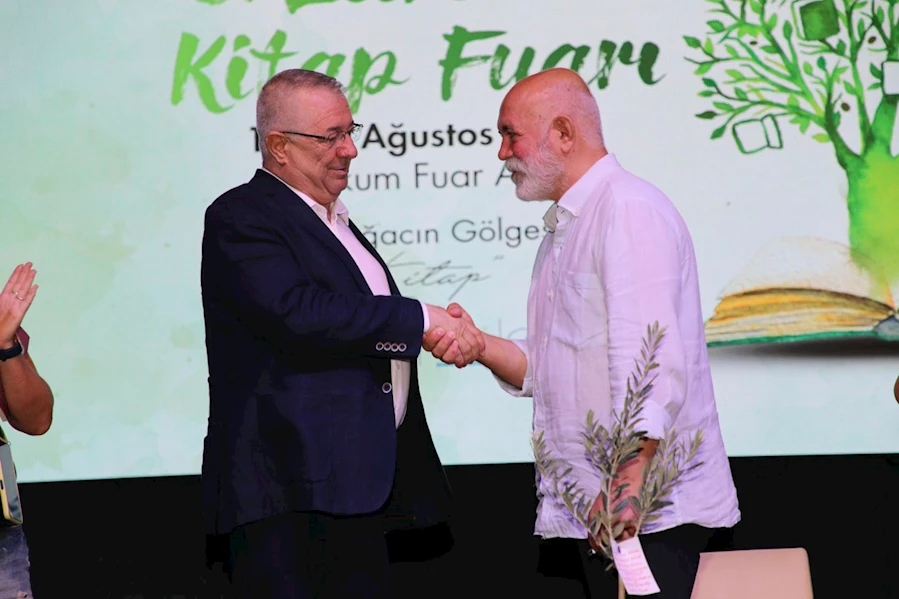 Büyük ilgiyle izlenen söyleşinin ardından Edremit Belediyesi Meclis Üyesi Erdoğan Dursun, Kesal’a teşekkür plaketini takdim etti.