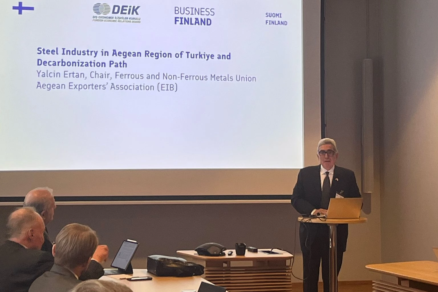 İZMİR (İGFA) - Finlandiya’nın Başkenti Helsinki’de gerçekleşen Jetco toplantısına Ege İhracatçı Birlikleri’ni temsilen katılan EİB Koordinatör Başkan Yardımcıwsı ve Ege Demir ve Demirdışı Metaller İhracatçıları Birliği Başkanı Yalçın Ertan, Türkiye'nin 2024 yılında Finlandiya'ya ihracatı 463 milyon dolar olduğuna dikkati çekerek, "Bu ihracatın 60 milyon dolarlık dilimini demir ve demirdışı metaller sektörü yaptı. Bu ihracat rakamımızın daha yüksek seviyelere ulaşması için Avrupa Birliği’nin Türk demir çelik ürünlerine uyguladığı kotaların kaldırılmasını istiyoruz” dedi.