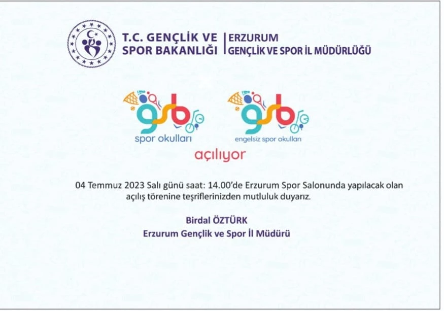 Erzurum Gençlik ve Spor İl Müdürlüğü Spor Okulları açılış daveti