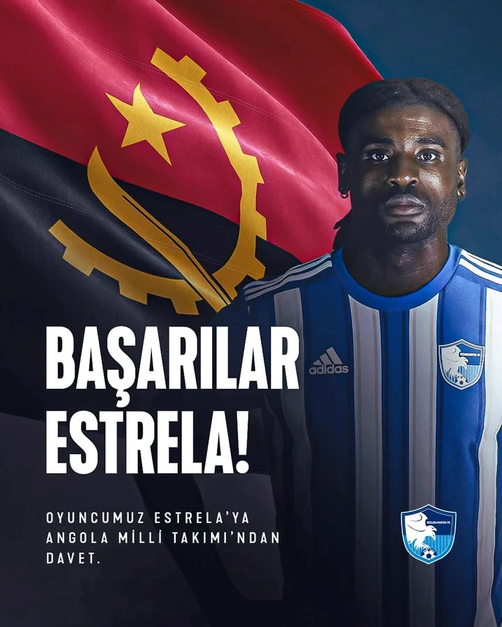 Erzurum Spor FK Futbolcusu Estrela Angola Milli Takımına davet edildi. Angola Milli Takımı, Afrika Uluslar Kupası grup eleme maçında 7 Eylül Perşembe günü saat 19.00’da Madagaskar’la karşılaşacak. Daha sonra İran Milli Takımı ile dostluk maçına çıkacak olan Erzurum Spor FK Futbolcusu Estrela, milli takım maçlarının ardından Erzurum’a dönerek takımda ki çalışmalarına devam edecek.