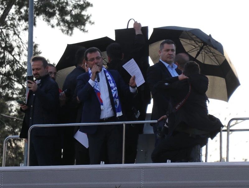 Bir süre sonra seçim otobüsü içinden meydana seslenmeye devam eden İmamoğlu, 'Güvenlik sağlanana kadar burada duracağız. Sizler burada provoke edilmiş, kadınların başına, elinde Türk bayrağı olan insanlara taş attırıyorsunuz. Sözüm ona milliyetçilik üzerinden insanlara taş attırıyorsunuz.' ifadelerini kullandı. TOMA'lar taş atan gruba, tazyikli suyla müdahalede bulundu. MHP İl Başkanı Adem Yurdagül, alana gelip grubu sakinleştirmeye çalıştı. Polisin güvenlik önlemini sürdürdüğü bölgedeki kalabalık dağıldı. İmamoğlu ise programını yarıda bırakarak havalimanına hareket etti.