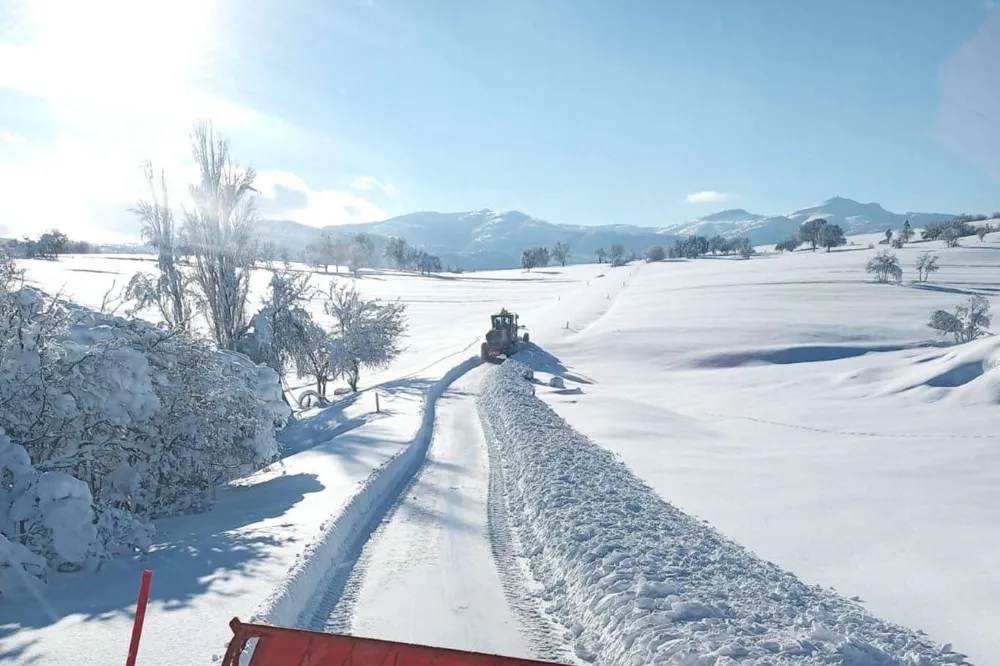 Yolların kapalı olduğu kırsal mahallelerde karla mücadele çalışmaları sürüyor