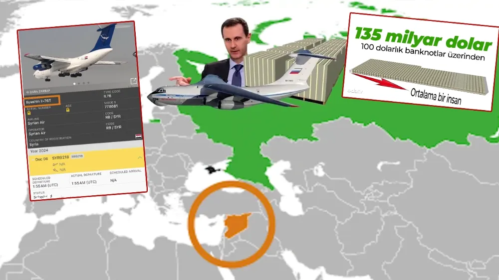 "Esad'ın kaçtığını iddia edilen uçağın modeli İlyuşin İl-76. Sovyetlere ait 1974'te üretilmiş bir nakliye uçağı. 40 ton kapasiteye sahip. Günümüzde 1 adet 100 Amerikan Dolar banknotu yaklaşık 1 gram geliyor. Bunu da kaçırıldığı iddia edilen para üzerinden hesaplarsak yaklaşık 1350 tona tekabül ediyor.