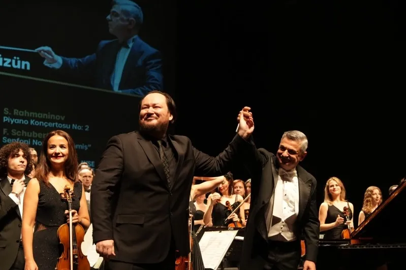 Konserin ilk bölümünde, romantik dönem Rus bestecilerinden S. Rahmaninov’un başyapıtlarından biri olan 2 numaralı piyano konçertosu seslendirildi. İlk kez 1901 yılında Moskova’da bestecinin kendi solistliğinde icra edilen ve o günden bu yana klasik müzik repertuvarının vazgeçilmezleri arasında yer alan eser teknik zorlukları ve derin duygusal anlatımıyla dikkat çeken eserlerden biridir.
