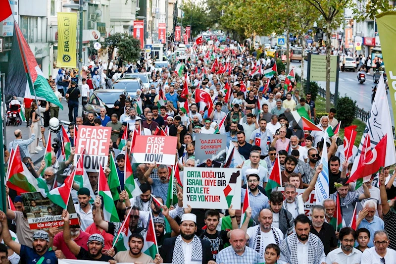 Eylemde katılımcılar, Fatih Camii önünden Edirnekapı’ya kadar yürüdü. Binlerce kişi yürüyüş boyunca “Katil İsrail Filistin’den defol”, “Katil İsrail işbirlikçi ABD”, “Nehirden denize özgür Filistin”, “Gazze halkı yalnız değildir” sloganları attı, tekbirler getirdi.