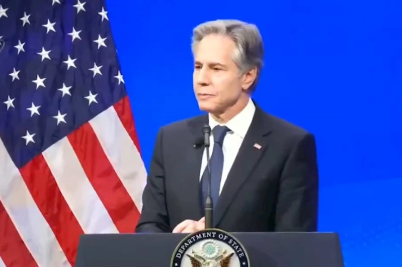 Blinken, Washington Atlantik Konseyi'nde konuşurken Filistin'e destek veren aktivistlerden biri, "Sen sonsuza kadar Soykırımdan Sorumlu Dışişleri Bakanı kahrolası Blinken olarak anılacaksın. Ellerinde yüzbinlerce masum insanın kanı var." diye bağırdı.