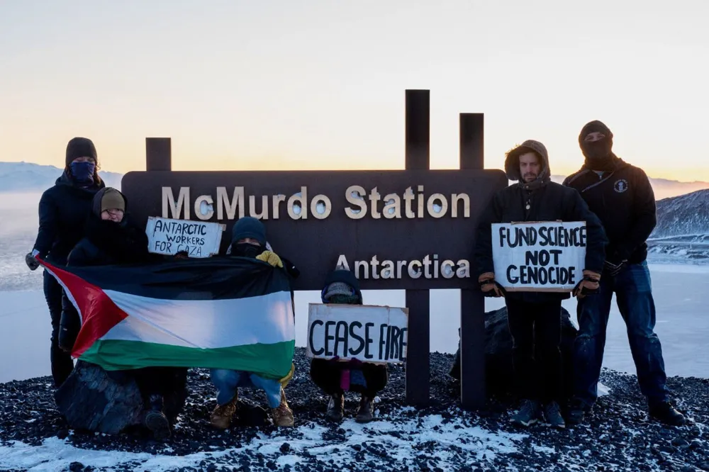 Kıtadaki Filistin yanlısı göstericilerin bir fotoğrafı paylaştı. Paylaşılan görüntüde, Ross Adası'nın güney noktasındaki McMurdo İstasyonu araştırma istasyonunda çalışan işçilerden birinin Filistin bayrağını tuttuğu, diğerlerinin de "Soykırıma değil bilime fon sağlayın", "ateşkes" ve "Gazze için Antarktika işçileri" yazan pankartlar taşıdığı görüldü.