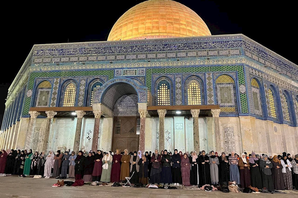 Siyonistlerin işgali mülkü Kudüs'te binlerce Filistinli, Ramazan üçüncü cuma günü sabah namazını Mescid-i Aksa'da eda etti.