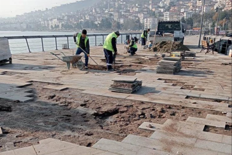 Ordu’da geçtiğimiz günlerde etkili olan ve fırtına ile oluşan dev dalgaların zarar verdiği alanlar Ordu Büyükşehir Belediyesi ekiplerince yenileniyor. ORDU (İGFA) - Ordu’da geçtiğimiz günlerde denizdeki fırtınanın etkisiyle dev dalgalar oluşması sonucu Altınordu ve Perşembe ilçesindeki rıhtım bölgeleri büyük zarar gördü. Fırtınanın etkili olduğu ilk andan itibaren Büyükşehir Belediyesi ekiplerince güvenlik önlemi alınan ve girişlere kapatılan rıhtımdaki hasarlar, fırtınanın dinmesi ile ortaya çıktı. Dalgaların büyük zarar verdiği Altınordu ve Perşembe ilçesindeki rıhtım ve kıyı şeridinin onarılması için harekete geçen Ordu Büyükşehir Belediyesi Parklar ve Yeşil Alanlar Dairesi Başkanlığı ekipleri mermer, ahşap zemin ve elektrik kabloların yenilenmesi için çalışmalarına devam ediyor.
