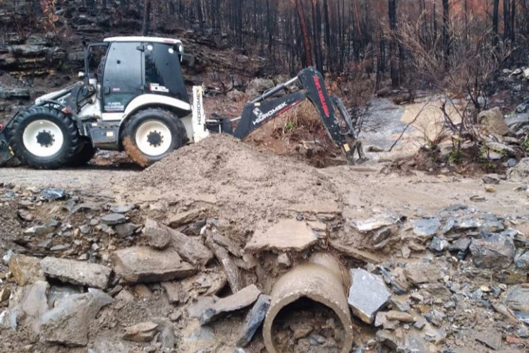 Antalya Büyükşehir Belediyesi kırsal alan ekipleri hafta sonu şiddetli yağış ve fırtına nedeniyle bazı ilçe yollarında heyelan meydana geldi.