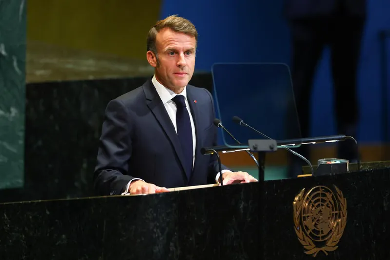 Birleşmiş Milletler bünyesinde Filistin Meselesine Çözüm Bulunması ve İki Devletli Çözümün Hayata Geçirilmesi Konulu Yüksek Düzeyli Uluslararası Konferans'ta konuşan Macron, "Gazze’de savaşı durdurmanın zamanı geldi." açıklamasını yaptı.