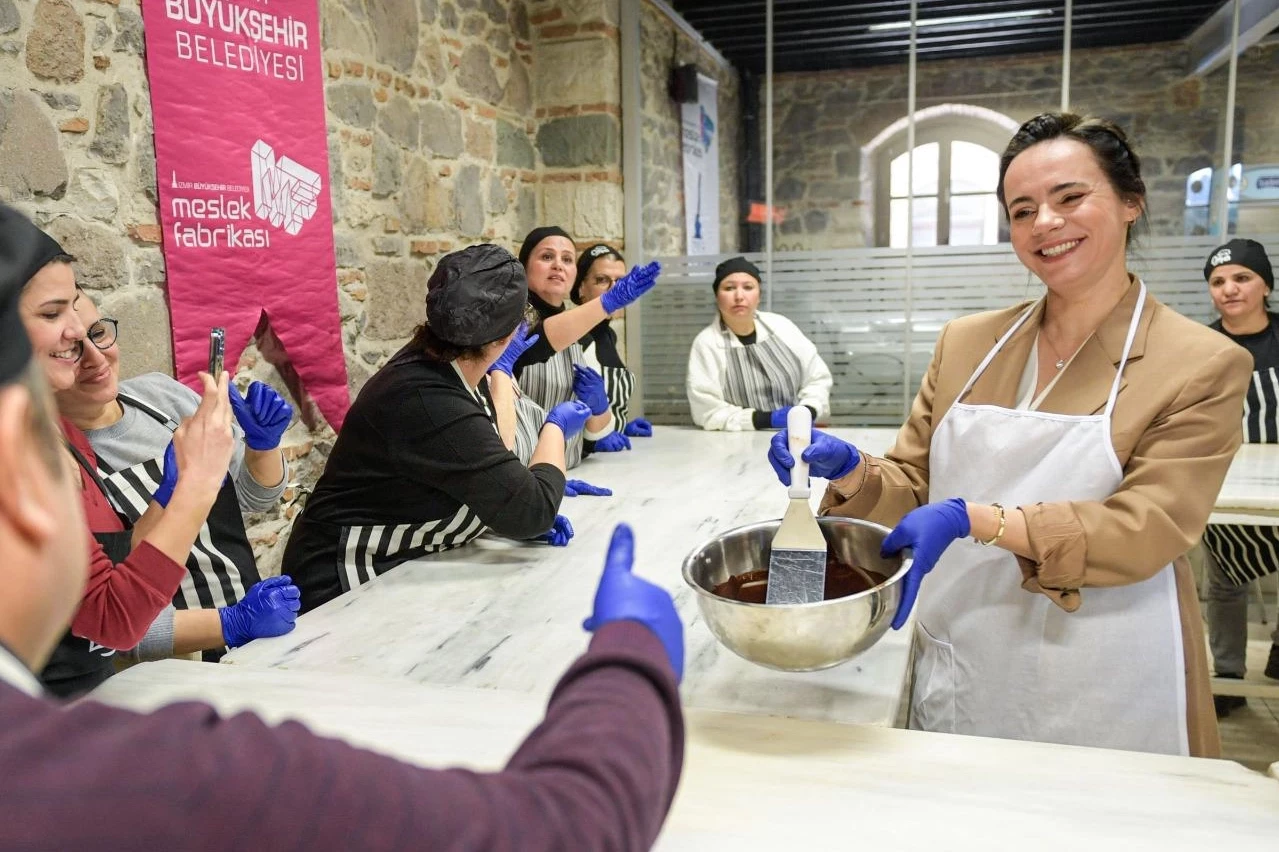 İzmir Büyükşehir Belediyesi Meslek Fabrikası’nın sağır ve işitme engellilere yönelik açtığı pastacı çıraklığı kursuna İzmir Büyükşehir Belediye Başkanı Dr. Cemil Tugay’ın eşi Öznur Tugay da katıldı. Öznur Tugay ve Fransız Şef Joelle Cam eşliğinde kursiyerler, işaret dili çevirmenleri eşliğinde pastacılığın inceliklerini öğrendi.
