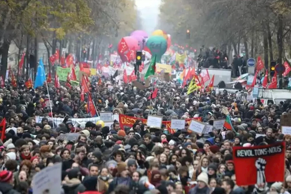 Fransa'nın en büyük sendikaları, yönetim tutma emeklilik reformuna karşı mücadeleye devam etme niyetlerini açıkladılar ve 7 ve 11 Şubat'ta yeni protestolar sürecinde bulundular.  Fransa İçişleri Bakanlığının resmi özelliklerine göre, ülke genelinde 19 Ocak'taki grev ve protestoların ilk gününden 150 bin daha fazla olmak üzere 1,2 milyon gösterici sokaklara döküldü. Lyon, Rennes, Rouen, Marsilya, Nantes ve Montpellier'de çok sayıda toplantı yapıldı, ancak en büyük başkent Paris'te yapıldı. Paris Polis İl Müdürlüğü'ne göre 87 bin kişi protestolara katıldı. Sendikalar ülkesi ise ortalama 2,8 milyon kişinin yürüyüş ve gösterilere katıldığını belirtti. Genel Çalışma Konfederasyonu'nun (CGT) yaptığı göre, yalnızca Paris'te yaklaşık 500 bin rehber toplandı. Aynı zamanda bağımsız izleme merkezi Oluşum, Salı günü Paris'te toplanan insan yerleştirme 55 bin kişi olarak tahmin etti