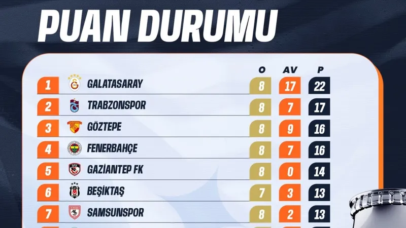 Süper Lig'de 8. hafta sonunda Galatasaray liderliğini korurken, Fenerbahçe zirveye yaklaşma fırsatını değerlendiremedi. Zirve yarışı artık sadece puan tablosunda değil, psikolojik üstünlük açısından da daha çetin bir rekabete sahne olacak.